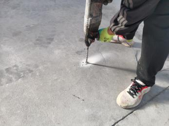 2、使用沖擊鉆進行鉆孔,當孔深大約20cm時,應注意鉆孔力度,防止打穿防水層;