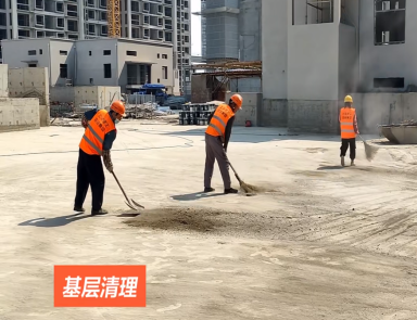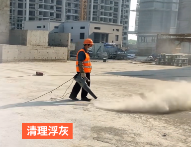 1、 將待施工基層清理干凈,鏟除基面浮漿、油污等雜質,使用大功率吹風機將基面浮灰清理干凈。
